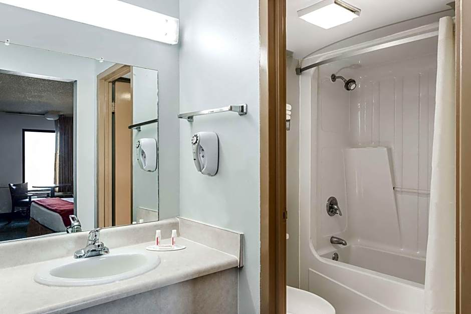The spacious suite offers air conditioning, a seating area, as well as a private bathroom boasting a bath and a shower.